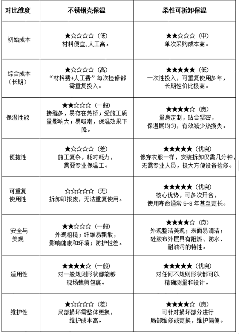 传统保温方式适用于长期稳定、无需检修的规整管道。而对于形态各异、需要维护、环境要求高的异型设备,柔性可拆卸保温套已不是一种“替代选择”,而是技术发展的必然方向。