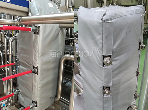 换热器保温衣简单的安装、拆卸结构便于设备维修、清洗时操作,重复使用,换热器保温衣由隔热层、保温层、防护层三部分组成,低导热率的保温材料保证了良好的节能保温效果,产品厚度轻薄,美观易擦洗,使用寿命6-10年,大幅降低设备维护成本。
