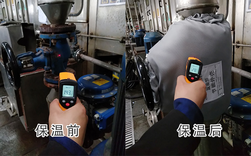 阀门可脱卸保温套通过CAD三维设计保证与设备紧密贴合,外观整洁美观,高温隔热效果好,有效减少阀门的热量损耗,保温套连接处通过魔术贴和金属扣连接固定,拆装方便快捷,而传统保温在每次检修时,拆除原有保温层,导致多数材料不能重复使用,造成固废及粉尘污染,影响工作环境和人员健康,检修完毕重做保温层,延长了设备维修周期,增加了材料、人工和时间成本。使用阀门可脱卸保温套综合一次性投入和后续维修投入,材料成本更低,重复拆装不会对保温层产生影响,循环重复使用,缩短检修时间,无粉尘污染,减少固废,具有良好的社会、经济效益。