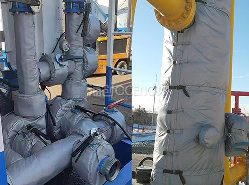石油树保温套由内防护层、中间复合保温层、外防护层三层结构组成,根据采油树外形尺寸量身定做,对有加热需求的设备管道可采用内置电伴热带保温套,石油树保温套采用魔术贴、金属搭扣、拼接等可拆卸设计结构,外观整洁美观,安装轻便灵活,可多次重复拆装、经久耐用,石油树保温套耐温范围广,具有良好的疏水性,确保吸湿后不变形,A1级阻燃防火性,耐酸碱腐蚀,抗老化,使用寿命长达6年以上。