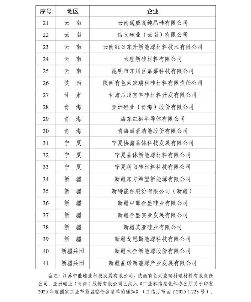 【转发】工业和信息化部办公厅关于印发2025年度多晶硅行业专项节能监察任务清单的通知